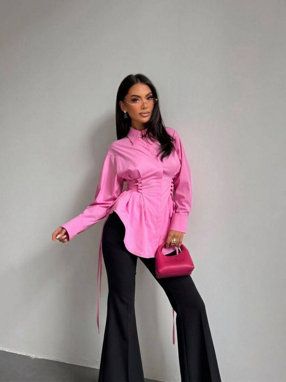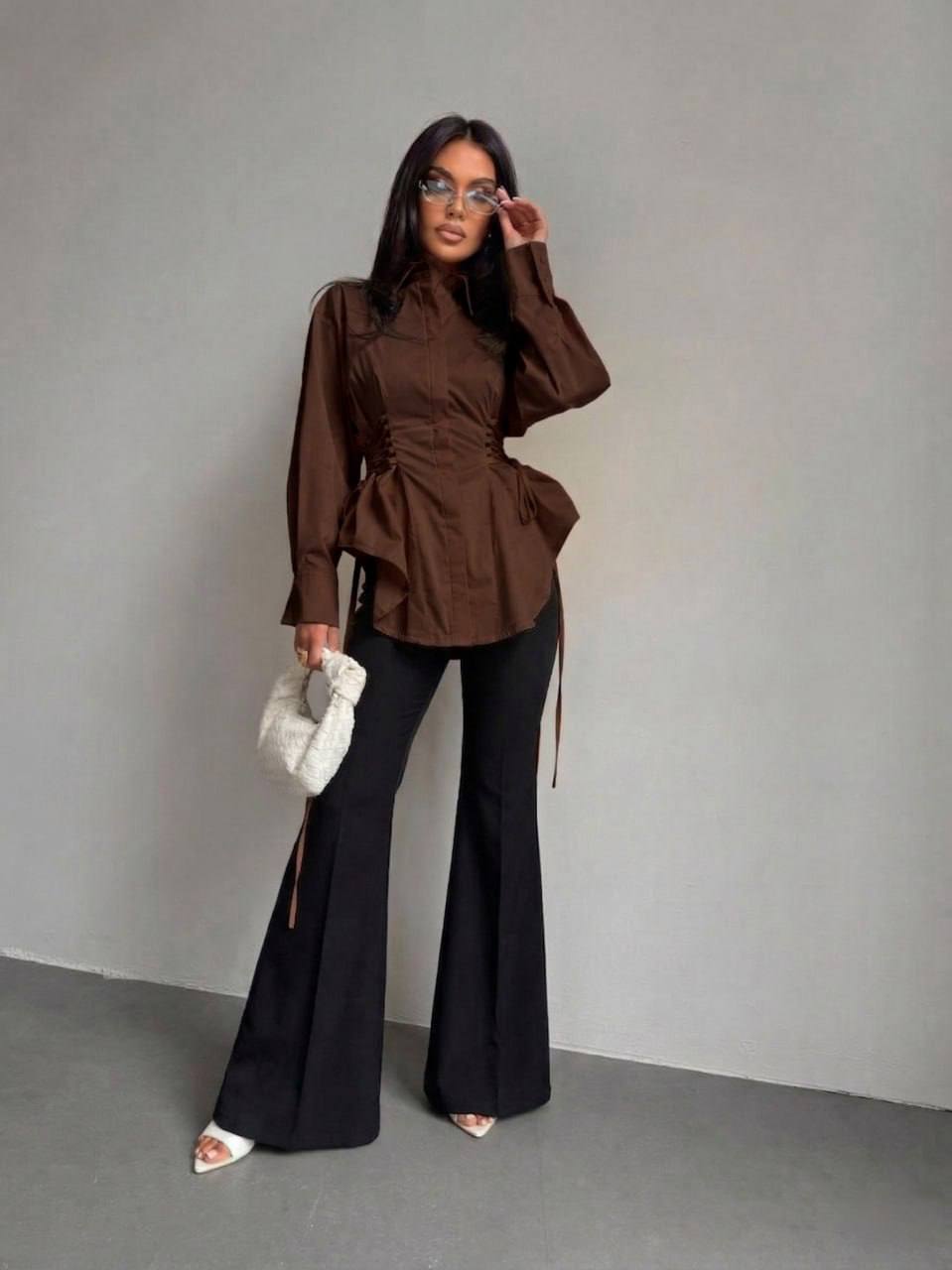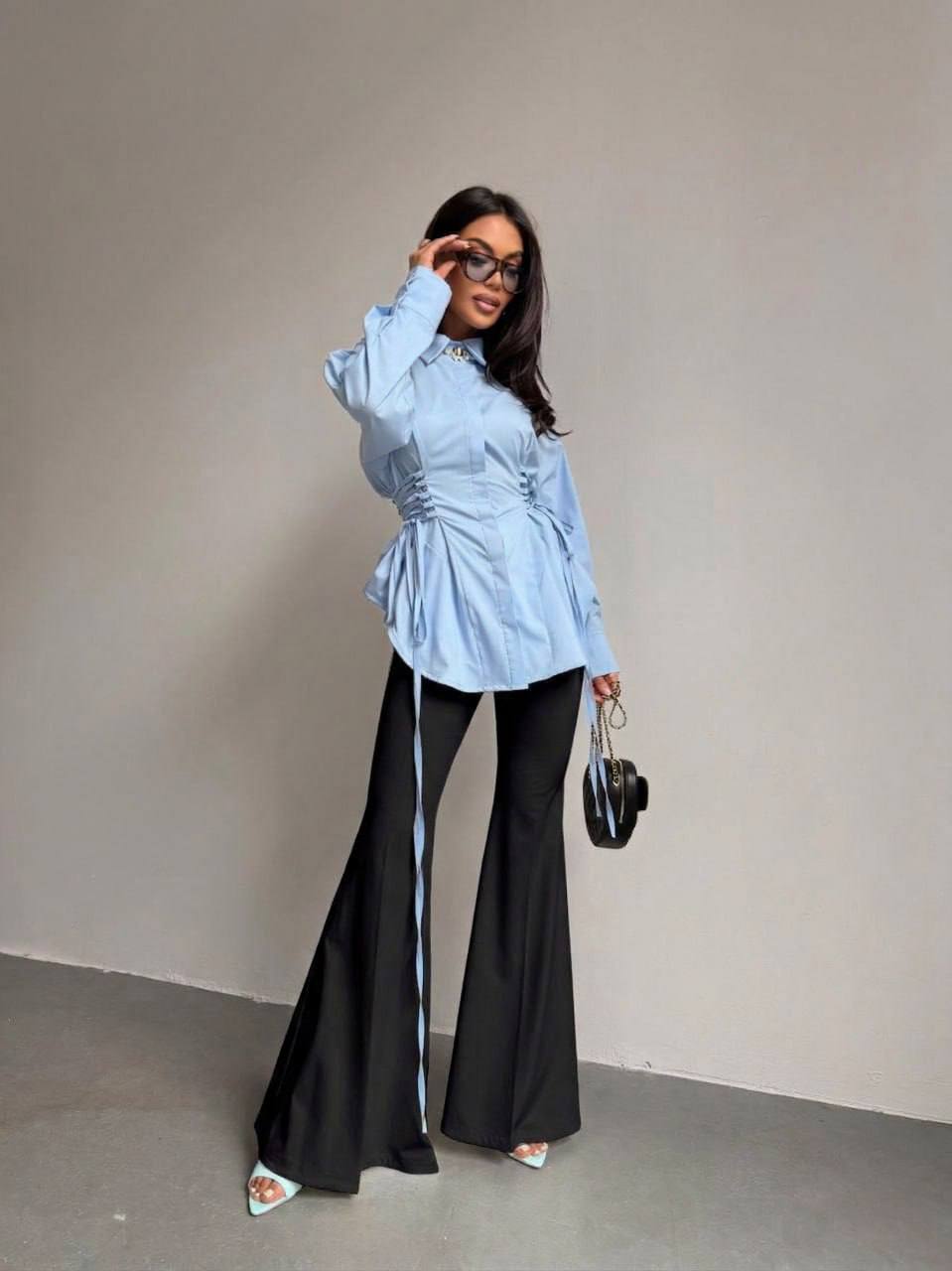 ✅Блуза з софту с корегуючими затяжками збоку ,підкреслює талію.Трендові лосини з високою посадкою.