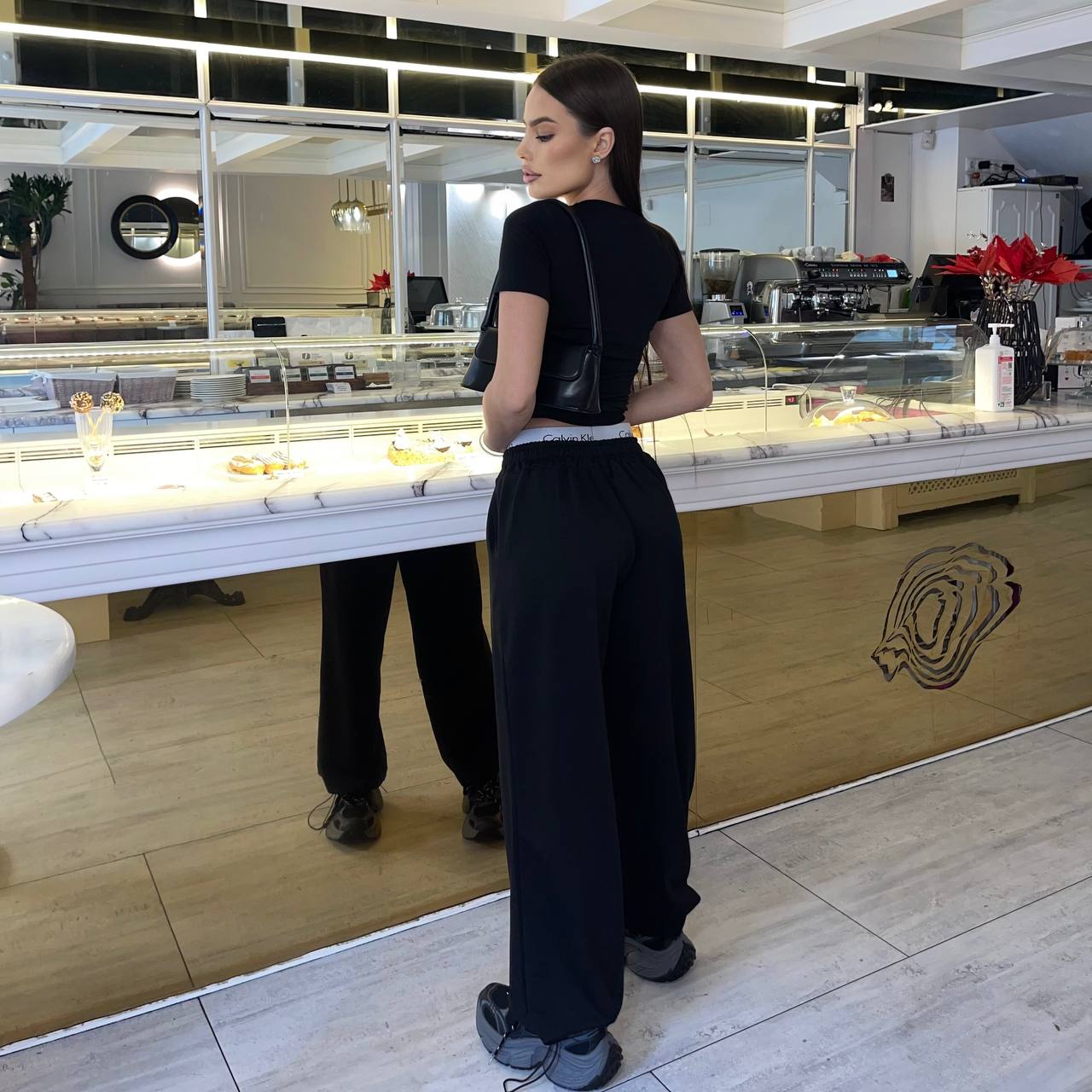 Must have цього сезону -костюм з лого резинкою (футболка та палаццо)
