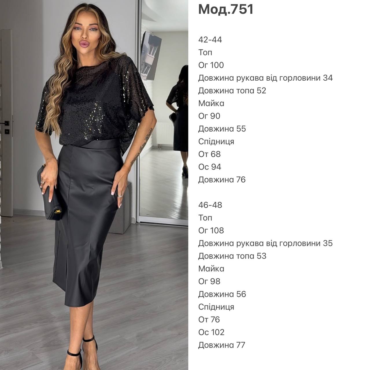 тканина: майка-софт, топ- паєтка , спідниця – матова шкіра