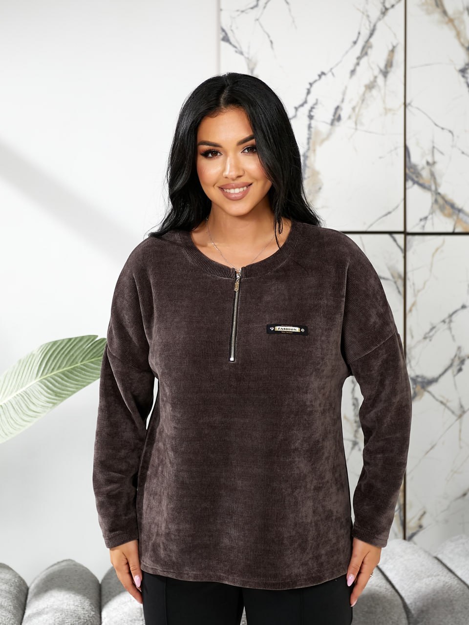 Стильний светер вільного покрою, фасон регланом. Доповнений молнією. Приємний до тіла, легенький та тепленький.